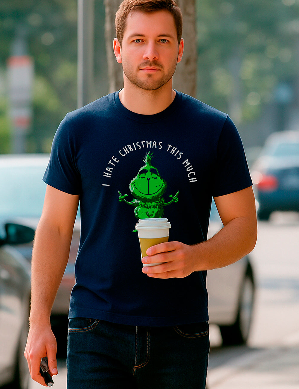 Camiseta de hombre de manga corta I hate Christmas this much de cuello redondo con las costuras reforzadas en la parte de los hombros y el cuello, convirtiéndolo en un producto ideal para el día a día Camiseta 100% algodón. Sin rozaduras; comodidad garantizada. Un básico con un colorido único en cada camiseta para lucir tu diseño preferido.