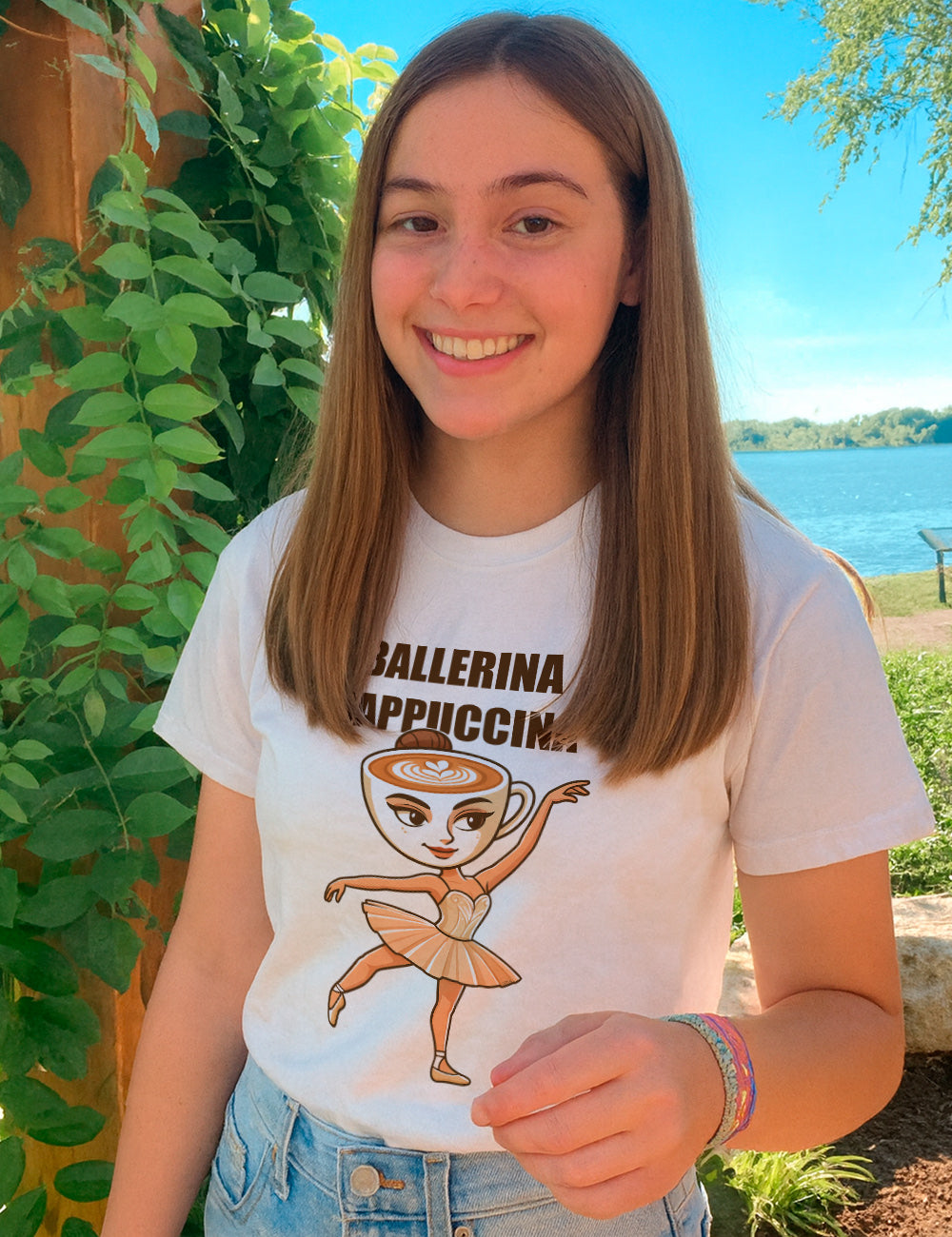 Camiseta de manga corta de mujer Ballerina Capuccina hecha para ti, de corte entallado y con cuello redondo doble acanalado. Camiseta 100% algodón diseñada con costuras laterales y reforzada en cuello y hombros para que te sientas tan agusto que no quieras quitártela.