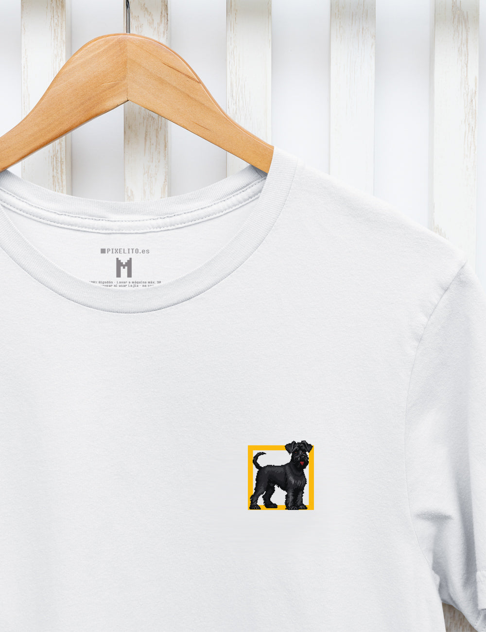 Terrier russo russo Manga curta para homens em branco, disponível em tamanhos da S a 3xl. Faz parte da coleção de cães da marca Pixelitos, combinando conforto e estilo em um design versátil e atemporal. Perfeito para qualquer ocasião.